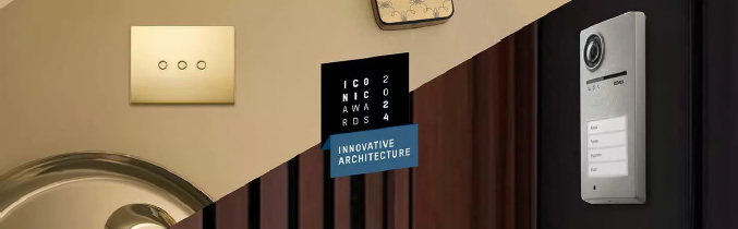 Vimar distinguida nos Iconic Awards 2024 com a série Eikon Exé (comando Tondo) e a placa de videoporteiro Roxie pela inovação e design.