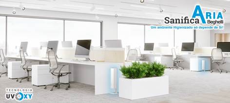 Este equipamento permite uma maior liberdade e segurança do ar em espaços fechados. O SanificaAria da Beghelli é um higienizador que utiliza a radiação UV-C para o tratamento do ar, aliado ao inovador sistema UvOxy® que evita a utilização de ozono permitindo desta forma a presença de pessoas durante o seu funcionamento e tornando-o absolutamente seguro para a saúde humana.